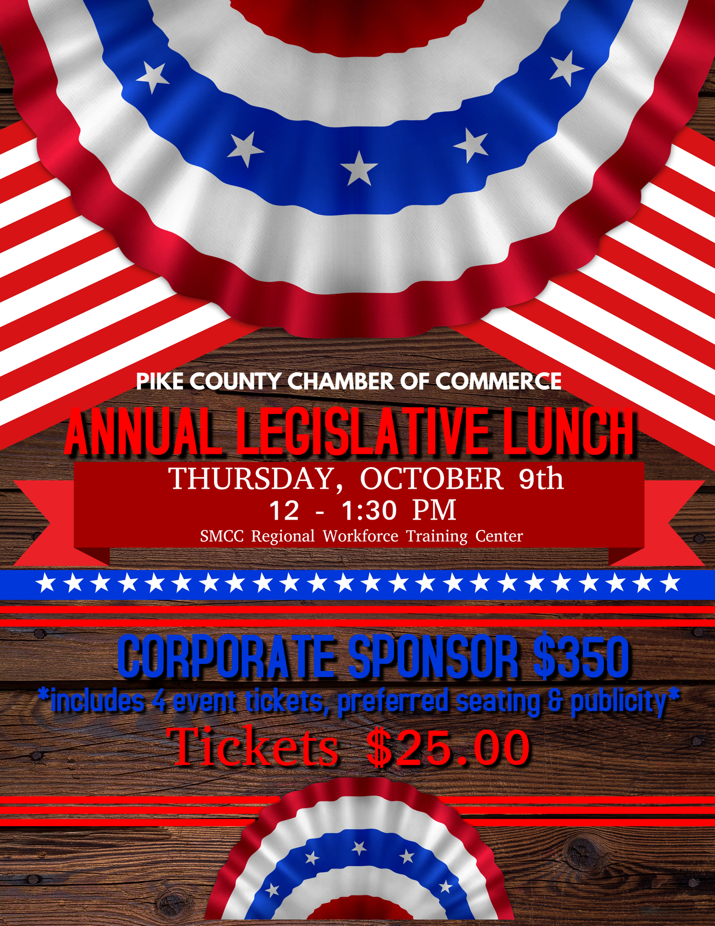 The Pike County Chamber of Commerce will host our legislators for a lunch and Q&A session on Thursday, October 9, 2025!