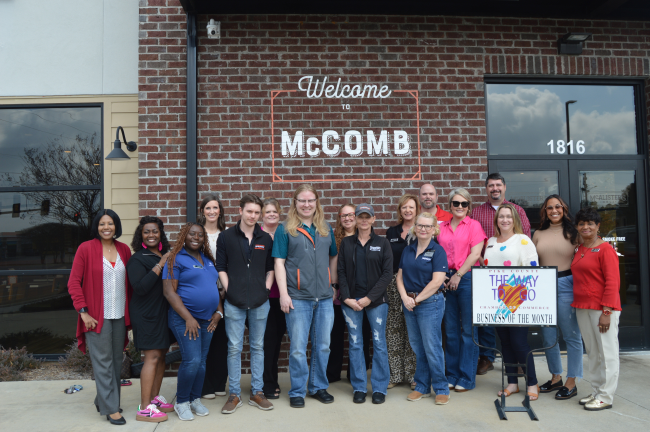 Despite being a chain restaurant, General Manag er Philip Scheel is adamant that McAlister’s is as invest ed in the local community as any other small business. “We are all about giving back to our community, and even though we are a corpo rate-owned store and not lo cally owned, we are locally operated,” he said. “... They say shop local and support lo cal, well we’re just as local as anyone else. Because of all the support that we get from our community … we are able to support our community back.” That local support has earned McAlister’s the Pike County Chamber of Com merce’s Business of the Month award. Scheel said the restaurant donates meals to several pro grams, including Camp Sun shine and the Open Doors Theater Project. The restaurant, which has been in operation in McComb for six years, is a national training center for McAlis ter’s, which brings in people from all over the country to McComb for training. While receiving the Busi ness of the Month award, Scheel thanked the chamber and the community. “I just want to say thank y’all for supporting our store, supporting and recog nizing what we do with this opportunity that this com pany has given us to support our town. I feel like we al ways try to show our best and I feel like all of y’all do the same,” he said. “This is just a shining example of the good and the positive that McComb can do here and we try to emphasize that here with our store, with our community outreach, and our youth that we employ.”